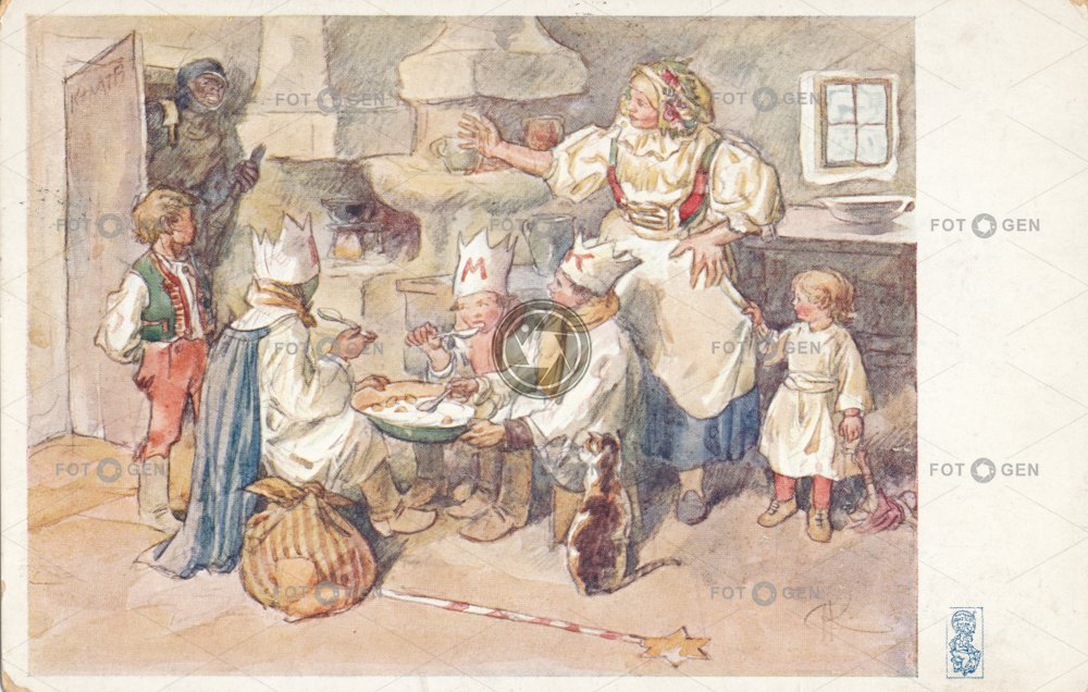 Baltazar carol singers děti dítě Feiertage holidays child Christmas Kašpar Kind koledníci kreslené leisure malované Melichar novoroční nový rok prvorepublikové přání Sternsinger sváteční svátky three Kings tři králové vánoce vánoční volný čas Weihnachten