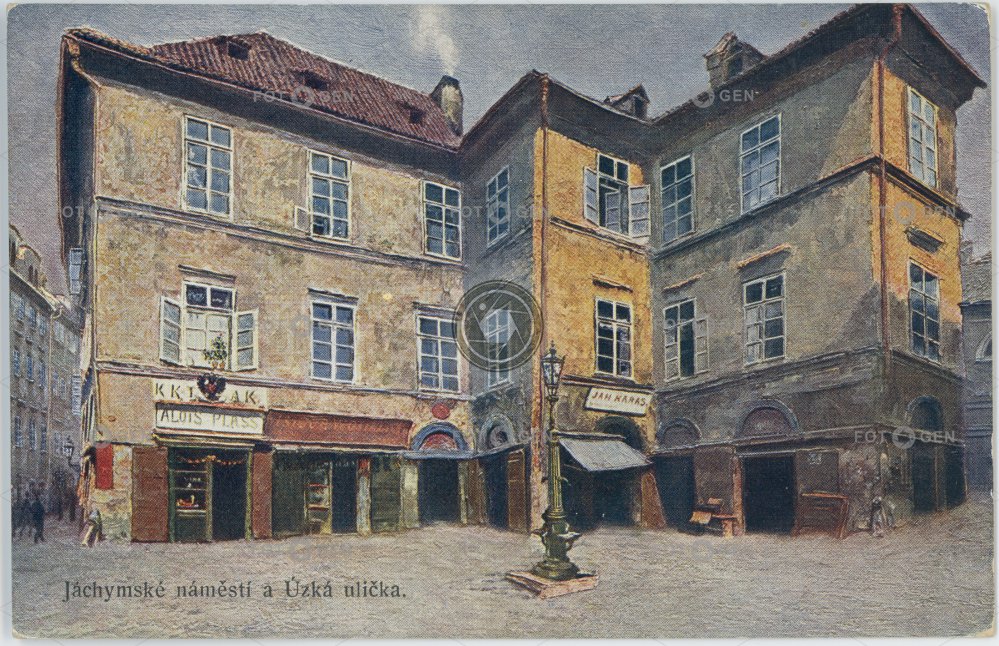 art barevná candelabra colored čtyřbarevná autotypie dormitory Jáchymské náměstí Jewish ghetto Josefov kandelábr kolej lighting malba místopis obchod osvětlení Plass pouliční lampa Prague Praha pump pumpa shop square street lamp The Jewish Town topography Trefanovského U Vápenice umění Úzká VUT židovské ghetto židovské město