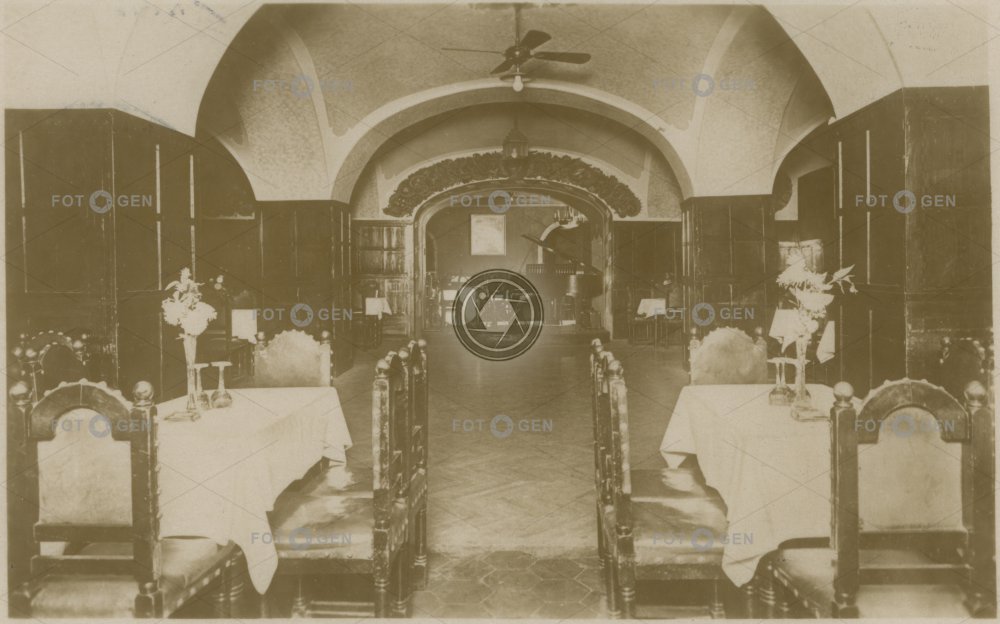 1931 42000 brasserie dancing-hall equipment Ferdinandova furniture gaff hospoda chair interiér interior místopis nábytek Národní pivnice Prague Praha pub restaurace restaurant stůl table tančírna telefon topography třída Tuma Tumův U zlaté kapličky vybavení židle