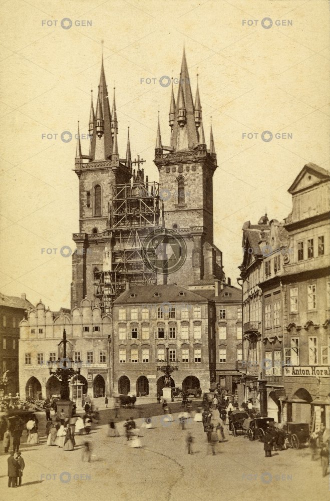 Chrám Matky Boží Church of the Mother of God místopis Old Town Old Town Square pouliční ruch Prague Praha Staré Město Staroměstské náměstí street traffic topography towers Tyn Cathedral Týnský chrám věž