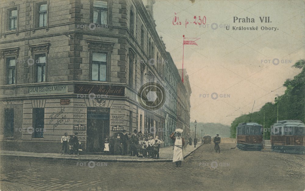 1907 alive Holešovice Josef Kašpárek kuřácké potřeby místopis Nad Královsou oborou obchod Prague Praha Praha 7 shop street Stromovka topography tram tramvaj U Královské obory živá