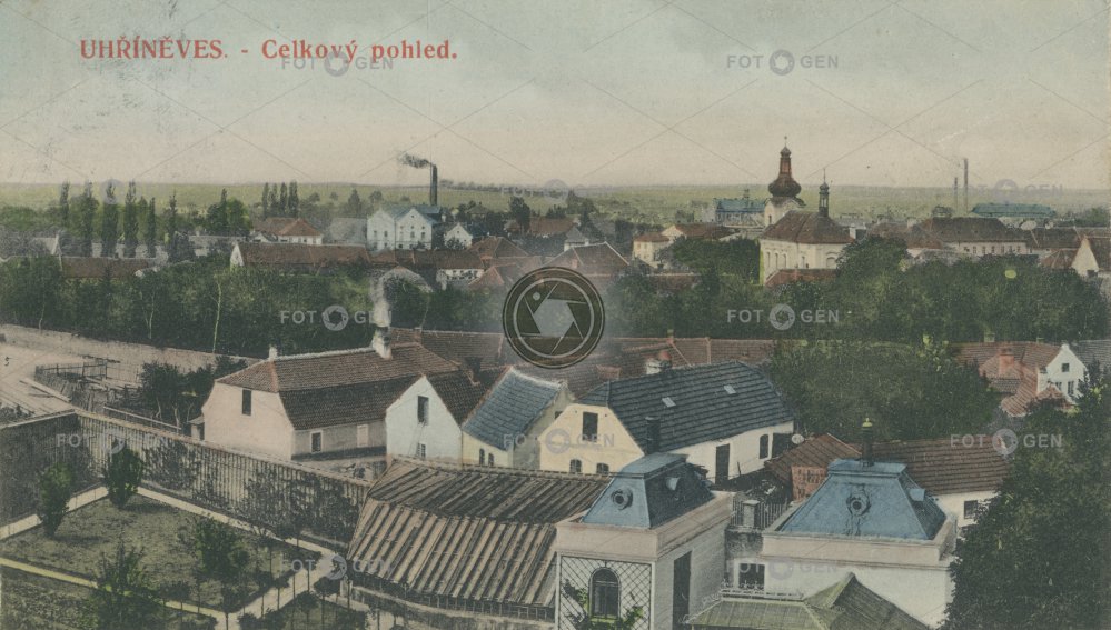 1910 barevná celkový color colored kolorovaná kostel svatého Mikuláše místopis neexistující neexistující objekt nonexistent building panorama Prague Praha topography Uhřiněves Všech svatých
