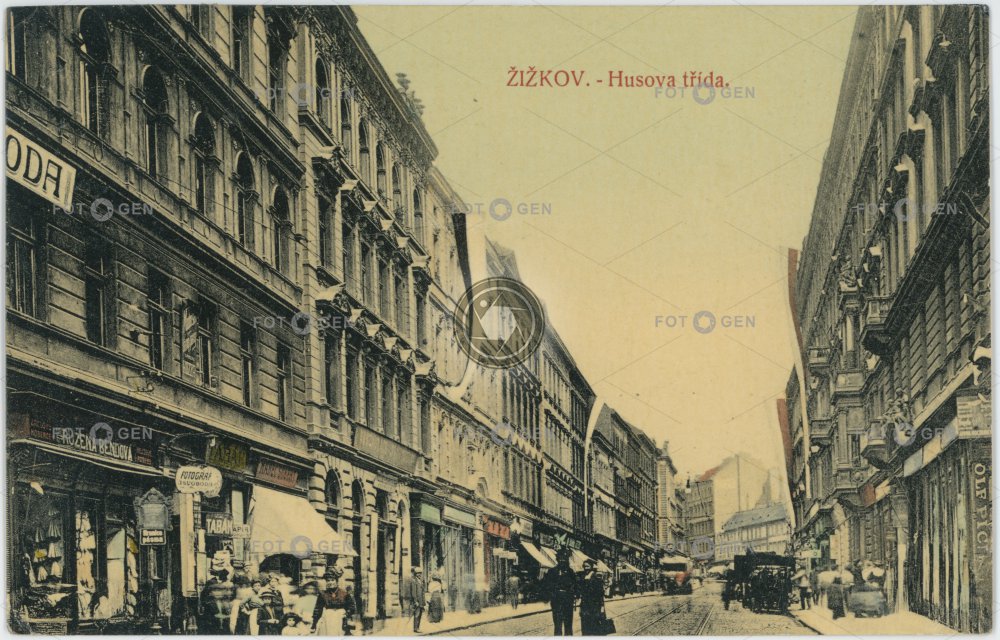 1913 alive barevná colored husitská Husova kolorovaná místopis Prague Praha street topography živá Žižkov