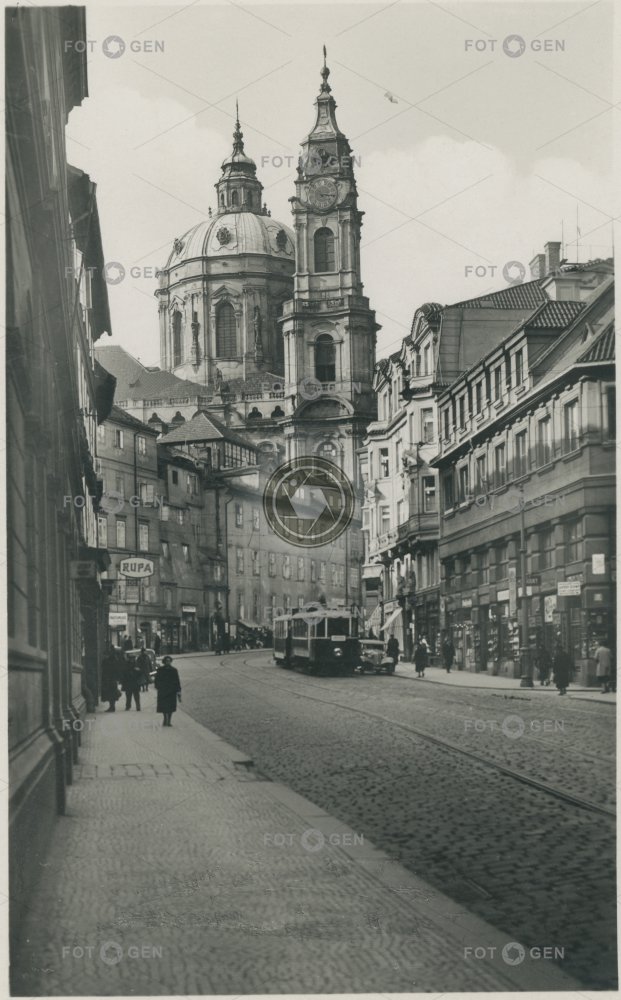 alive belfry clock hodiny chrám church kostel Lesser Town Malá Strana místopis Mostecká Prague Praha svatého Mikuláše temple topography tram tramvaj tramvaj 12 Ulice k mostu zvonice živá