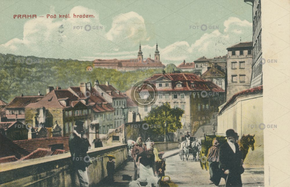 1908 alive barevná carriage color colored Golden Star Grand hotel Hradčany church Ke hradu kočár kolorovaná kostel místopis panny Marie Prague Praha topography Zlatá hvězda živá