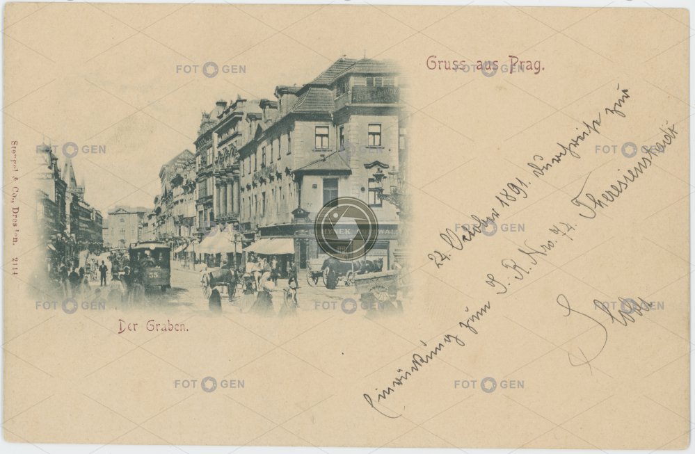 1891 55 alive barrow dům U Špinků dvoukolák handcart horse tram horse-drawn carriage horse-drawn railway Hynek Gottwald koňka koňský povoz místopis Na Příkopě Na Příkopech neexistující neexistující budova neexistující objekt neexistující stavba non-existent nonexistent building pouliční ruch pouliční život povoz Prague Praha Příkopy ruční vozík Street life street traffic theater topography tram tramvaj tramvaj 55 Ve starých alejích živá