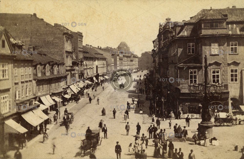 awnings kandelábr lamppost léto markýzy místopis můstek Na Příkopě Old Town Prague Praha Staré Město street summer topography ulice