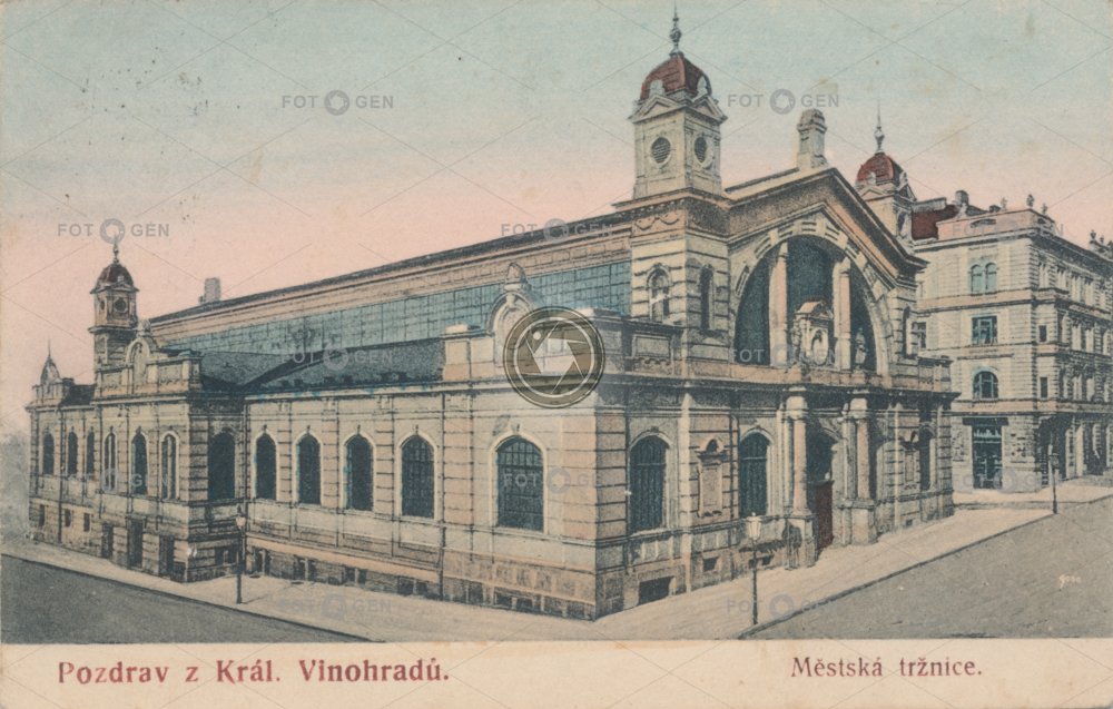 1910 A. Turek Antonín Turek architekt barevná color colored department store factory Geschäft Chocholoušek Chocholouškouva kolorovaná Königliche Weinberge Královské Vinohrady městská místopis obchod obchodní dům Pavilon Prag Prague Praha Royal Vineyards shop sklep store topography továrna tržnice Turek üzlet Vinohrady