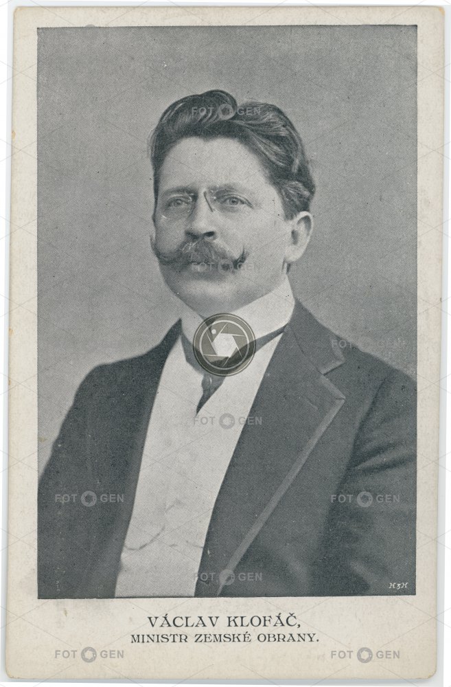 brýle celebrity glasses journalist knír minister ministr ministr zemské obrany mustache novinář osobnosti politik politika portrait portrét statesman státník Václav Klofáč