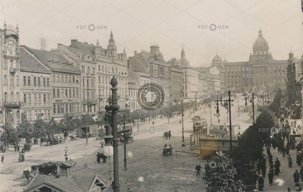 1906 alive dvoukolák Garni hotel koňská vlečka místopis náměstí Národní muzeum New Town Nové Město povoz Prague Praha square topography tram tramvaj U Lhotků Václavák Václavské Wenceslas Wenceslas Square živá