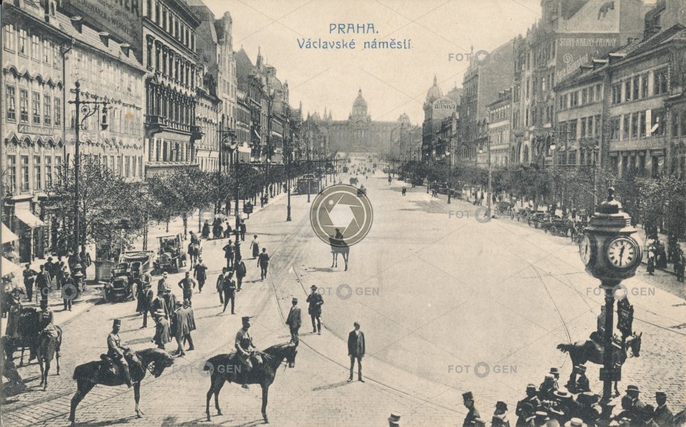 1910-1919 1912 armáda army auto car clock event hodiny horse Koňský trh kůň místopis New Town Nové Město Prague Praha Soldat soldier topography událost Václavák Václavské Václavské náměstí vojáci voják vojna vojsko Wenceslas Square