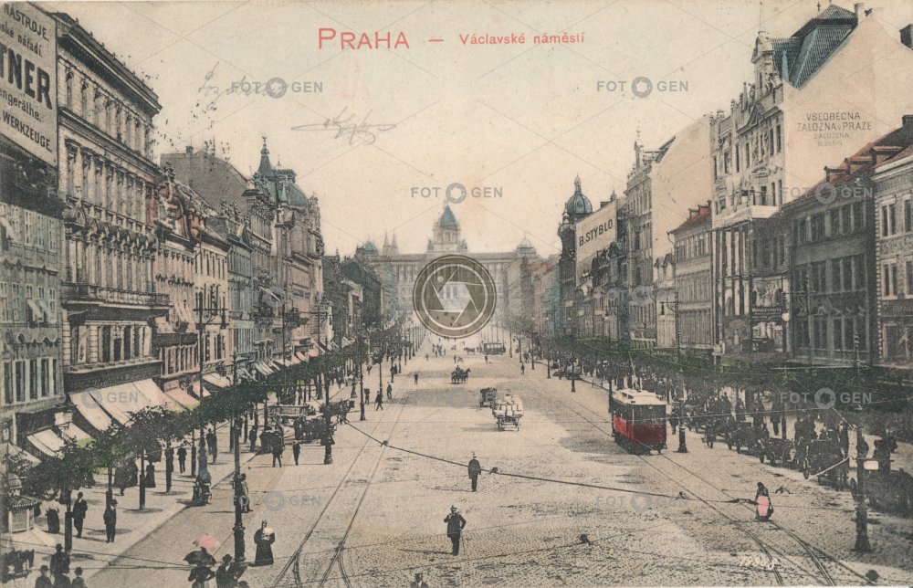 1901 colored kolorovaná místopis náměstí Národní muzeum New Town Nové Město Prague Praha square topography Václavák Václavské Wenceslas Wenceslas Square