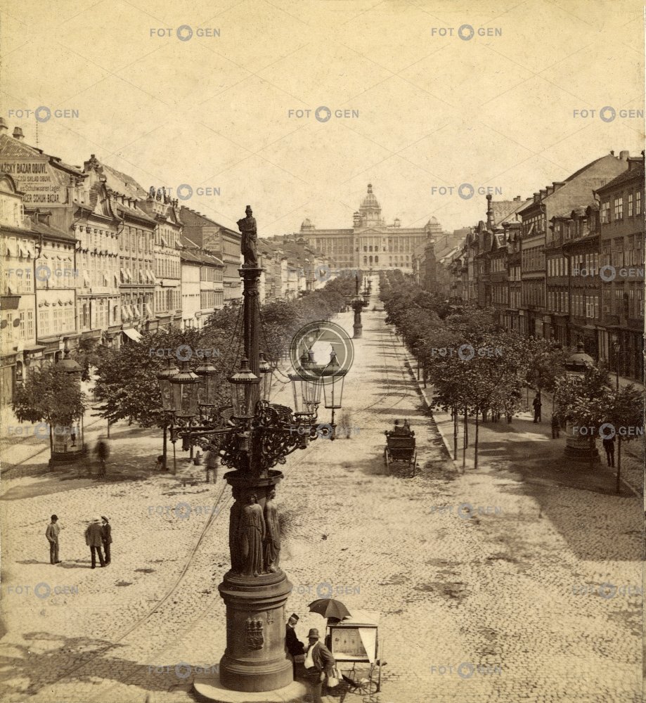 flašinetář flute player kandelábr lamppost místopis Národní muzeum National Museum Prague Praha stromořadí topography tree line Václavské náměstí Wenceslas Square