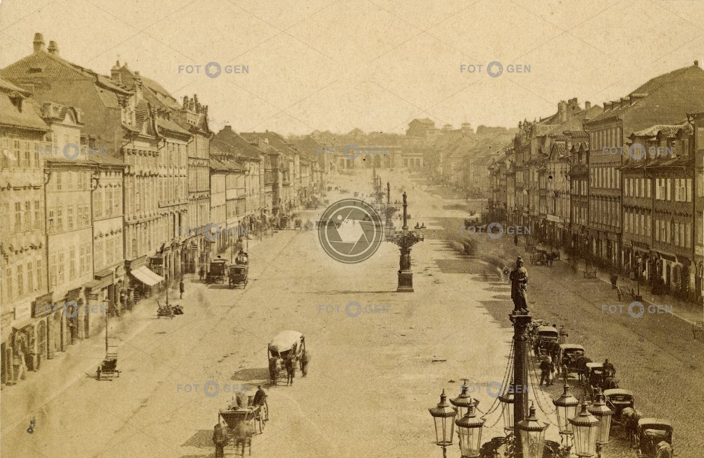 carriages fiacres fiakry Horse Gate kandelábr Koňská brána lamppost místopis New Town Nové Město povozy Prague Praha topography Václavské náměstí Wenceslas Square