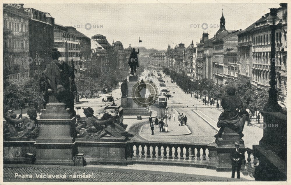 místopis náměstí Národní muzeum National Museum New Town Nové Město pomník pouliční osvětlení Prague Praha socha sochy sousoší square statue street lamp sv. Václava topography Václavák Václavské Wenceslas Wenceslas Square