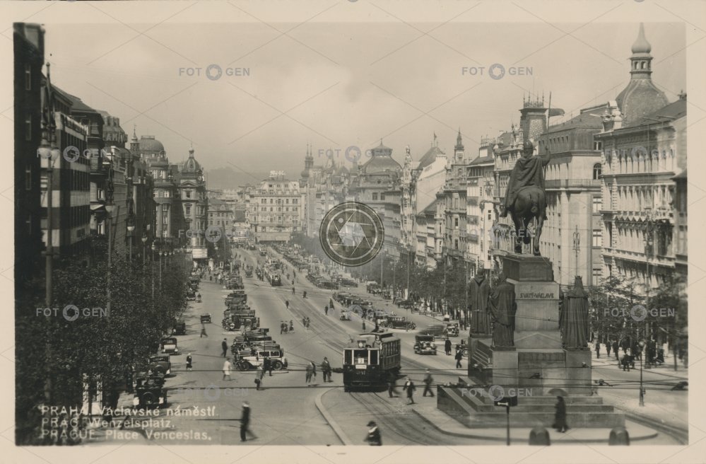 auto automobil equestrian statue jezdecká socha místopis monument náměstí New Town Nové Město pomník Prague Praha square sv. Václava topography tram tramvaj Václavák Václavské Wenceslas Wenceslas Square
