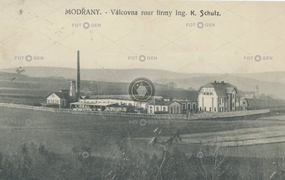 celkový engineering company factory industry K. Schulz Komořany místopis Modřanská potrubní Modřanské strojírny Mostro neexistující objekt non-existent panorama Prague Praha průmysl Semos strojírenský podnik topography továrna U modré hvězdy válcovna rour