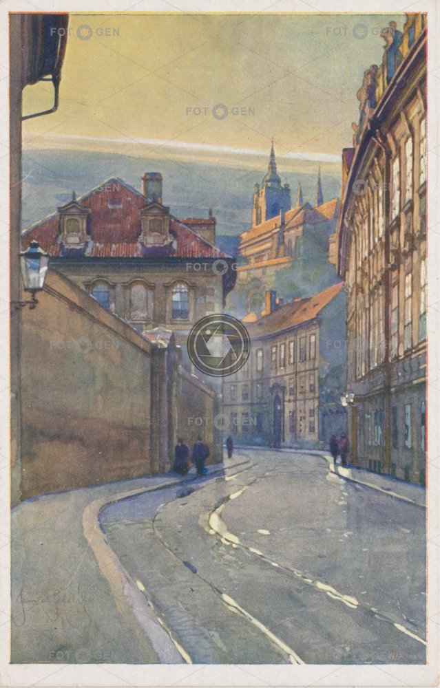 art barevná colored dům Fürstenberský palác J. ŠETELÍK katedrála kolorovaná kresba malba místopis palace Prague Praha svatého topography U tří králů umění Valdštejnská Víta