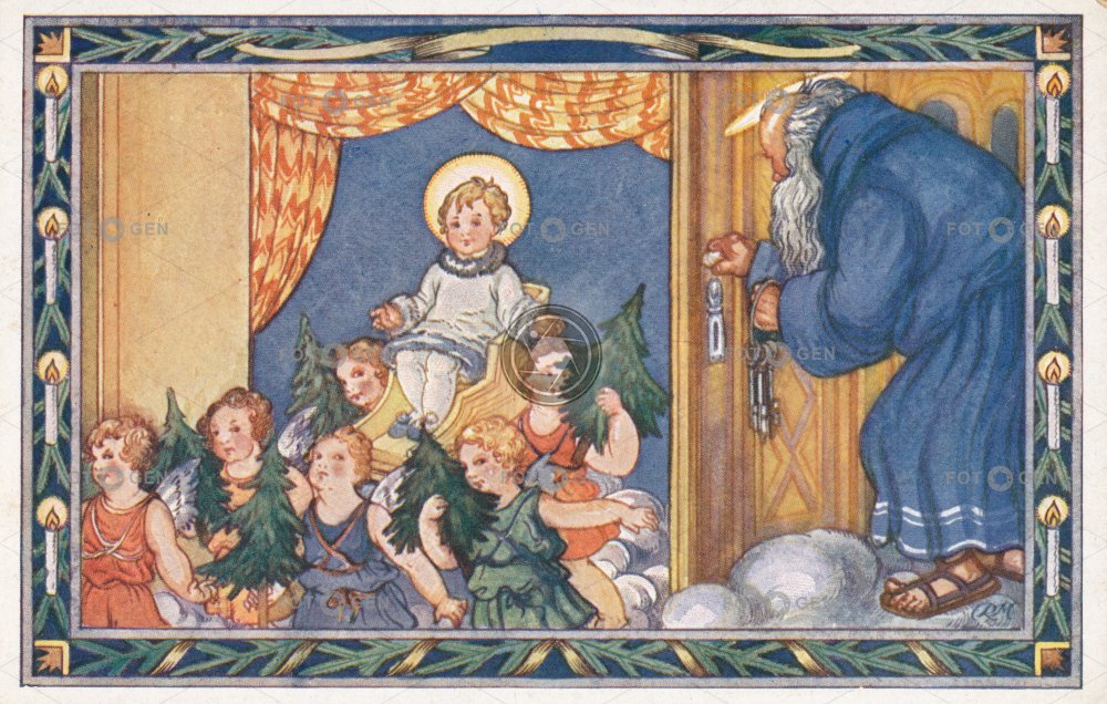 art barevná děti children Christmas Ježíšek kolorovaná leisure malíř motivy přání R. Mates svatí svatý umění vánoce vánoční volný čas