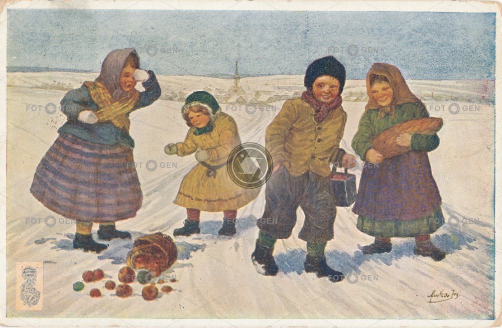 art carol singers děti dítě Feiertage holidays child Christmas Kind koledníci kreslené leisure malované novoroční nový rok prvorepublikové přání sněžení sníh Sternsinger sváteční svátky umění vánoce vánoční volný čas Weihnachten zima