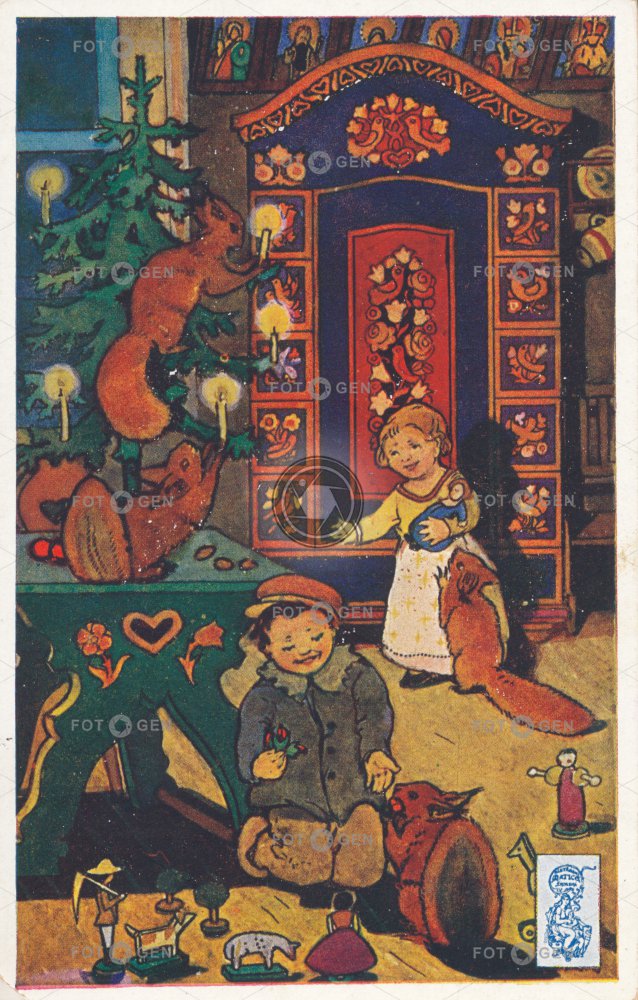 animal / bird animals dárky Eichhörnchen Feiertage Geschenke gifts holidays hračka Christmas Christmas tree kreslené leisure malované novoroční nový rok prvorepublikové přání squirrel stromeček sváteční svátky Tieren toy vánoce vánoční veverka volný čas Weihnachten Weihnachtsbaum zvířata zvíře