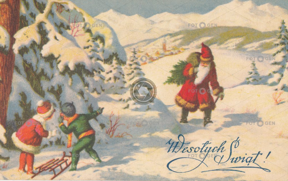 Babbo Natale Děda Mráz děti dítě Feiertage holidays child Christmas Ježíšek Julemand Kind krajina kreslené leisure malované Mikuláš novoroční nový rok prvorepublikové přání sáňky santa-claus scenery / landscape Schneeschlitten sněžení sníh snow sled sváteční svátky vánoce vánoční volný čas Weihnachten Weihnachtsmann zasněžená zima