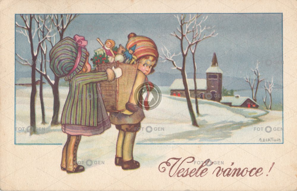 dárky děti dítě dívka dívky Feiertage Geschenke gifts girl holčička holidays holka child Christmas church Kind Kirche kostel kreslené leisure Mädchen malované novoroční nový rok prvorepublikové přání sněžení sníh sváteční svátky vánoce vánoční volný čas Weihnachten zima