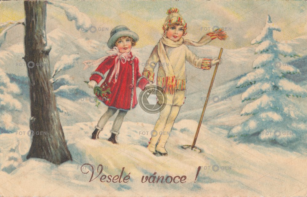 děti dítě dívka dívky Feiertage girl holčička holidays holka child Christmas Kind krajina kreslené leisure Mädchen malované novoroční nový rok prvorepublikové přání scenery / landscape sněžení sníh sváteční svátky vánoce vánoční volný čas Weihnachten zasněžená zima