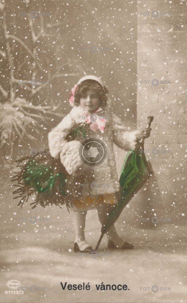 deštník děti dítě dívka Feiertage girl holčička holidays holka child Christmas Christmas tree Kind kreslené leisure Mädchen malované novoroční nový rok prvorepublikové přání Regenschirm sněžení sníh stromeček sváteční svátky umbrella vánoce vánoční volný čas Weihnachten Weihnachtsbaum zima