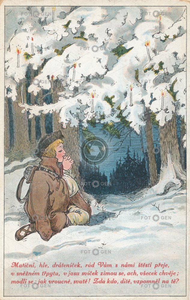 Boy Česká děti dítě Feiertage holidays child chlapec Christmas Christmas tree junge Kind krajina kreslené leisure malované matice novoroční nový rok nursery rhyme prvorepublikové přání říkanka říkanky scenery / landscape sníh stromeček sváteční svátky školská ústřední vánoce vánoční volný čas Weihnachten Weihnachtsbaum zasněžená
