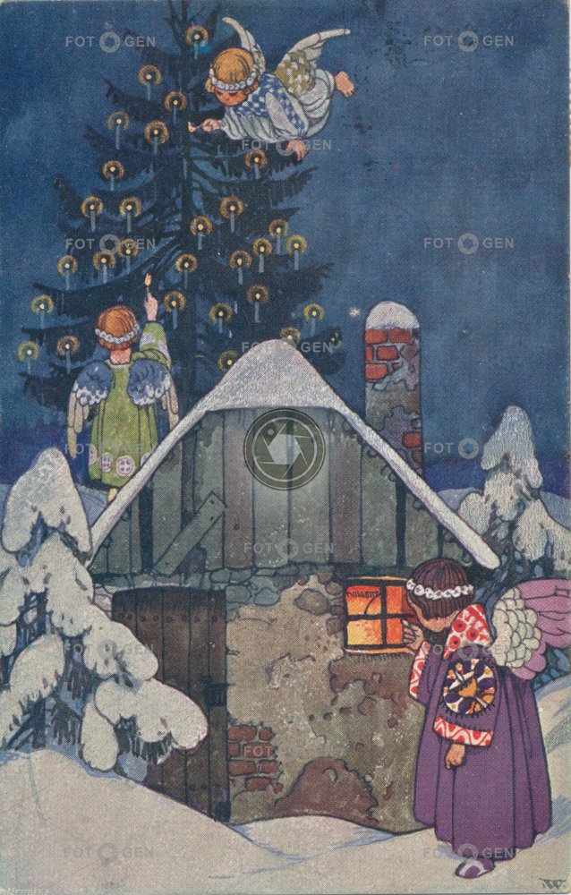 1917 anděl andělé andílci barevná engel Christmas kolorovaná kresba kreslená kreslený leisure malba malovaný motivy stromeček vánoce vánoční volný čas winter zima