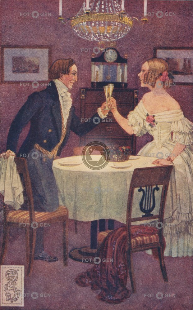 celebration dáma Feier Feiertage Frau holidays chair Christmas kreslené leisure malované man mann midnight Mitternacht muž New Year novoroční nový rok oslava prvorepublikové přání přípitek půlnoc sváteční svátky vánoce vánoční volný čas Weihnachten woman žena židle