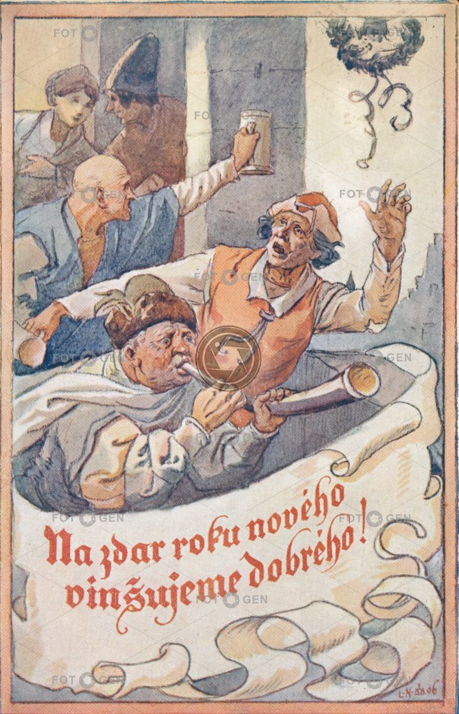 Feiertage holidays Christmas kreslené leisure malované New Year novoroční nový rok oslava prvorepublikové přání sváteční svátky vánoce vánoční volný čas Weihnachten