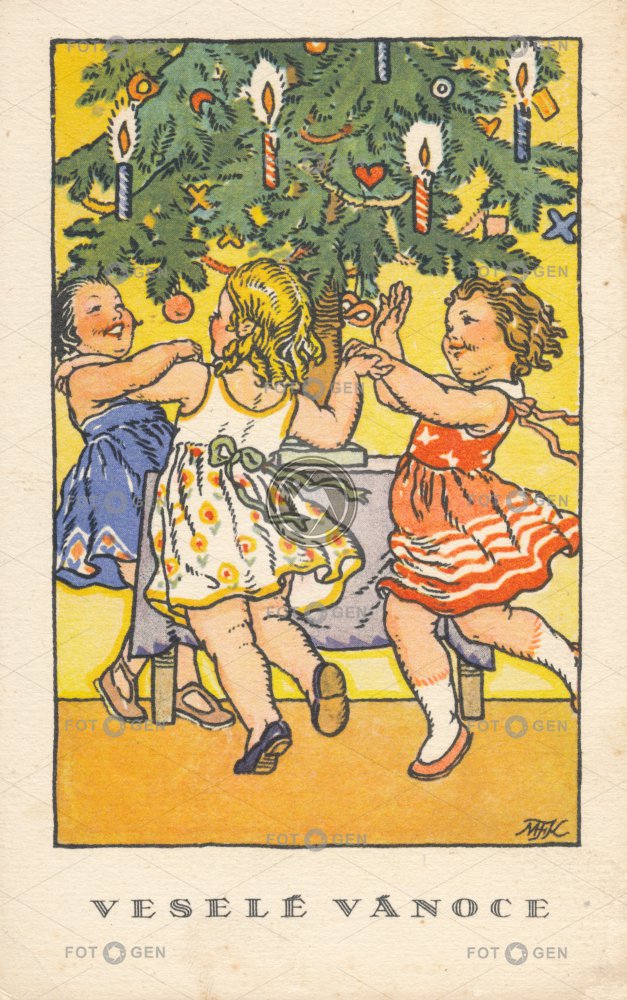 candle děti dítě dívka Feiertage girl holčička holidays holka child Christmas Christmas tree Kerze Kind kreslené leisure Mädchen malované novoroční nový rok prvorepublikové přání stromeček sváteční svátky svíčka tradice tradition vánoce vánoční volný čas Weihnachten Weihnachtsbaum