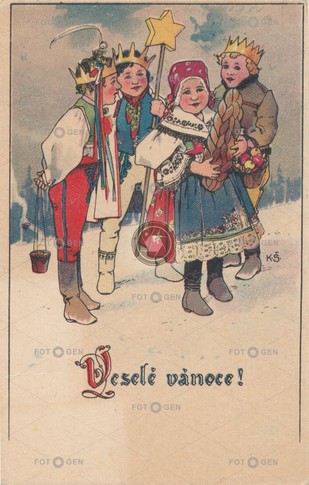 carol singers costume děti dítě Feiertage folk costume folklor folklore holidays Hvězda child Christmas Kind koledníci Kostüm kreslené kroj leisure malované novoroční nový rok prvorepublikové přání star Sternsinger sváteční svátky three Kings tradice tradiční šaty tradition traditional dress tři králové vánoce vánoční volný čas Weihnachten
