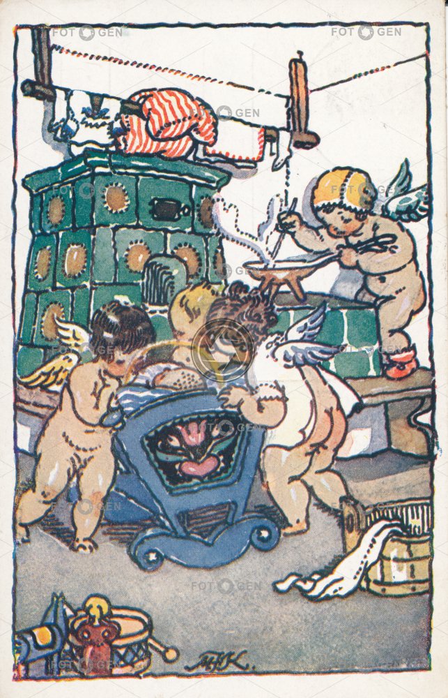 anděl angel cradle děti dítě engel Feiertage holidays child Christmas kamna Kind kolébka kreslené leisure malované novoroční nový rok pec prvorepublikové přání sváteční svátky vánoce vánoční volný čas Weihnachten Wiege