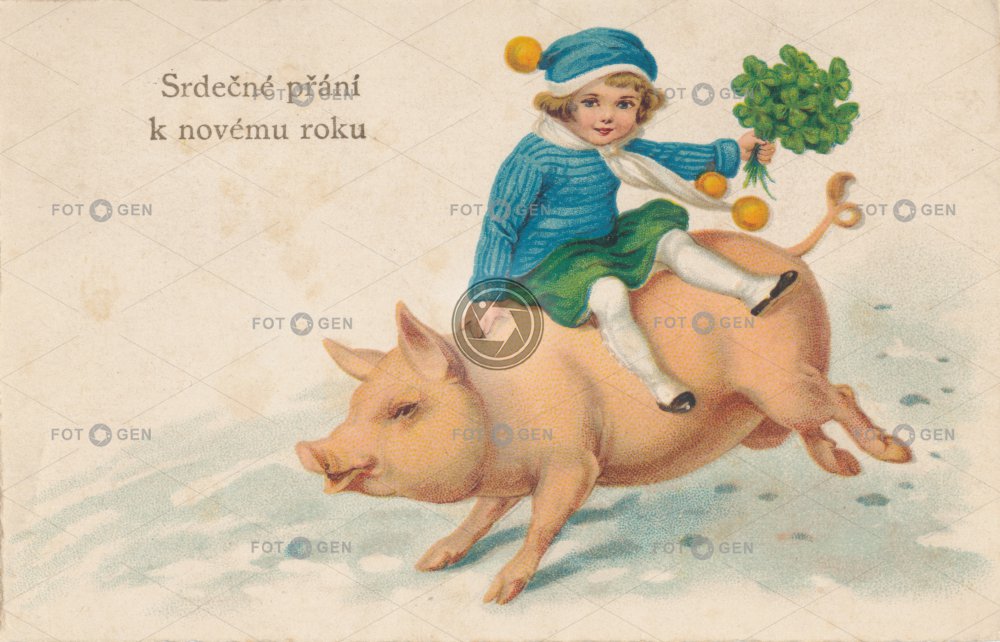 čtyřlístek dívka Feiertage girl Glück holčička holidays holka Christmas kreslené leisure luck Mädchen malované novoroční nový rok pig prasátko prase prvorepublikové přání Schwein sváteční svátky štěstí vánoce vánoční vepř volný čas Weihnachten