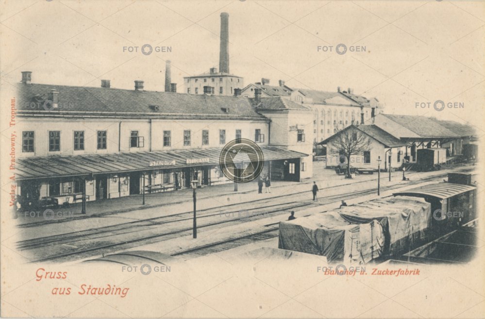 1900 budova cukr cukrovár doprava dráha Fabrik fabrika místopis nádraží nádražní nástupiště platform pociąg republika Stauding Studénka sugar factory topography továrna train Train Station transport trať vlak vlakové nádraží zucker železniční
