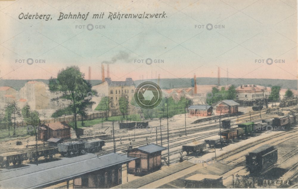 1908 barevná Bohumín colored doprava freight wagons kolorovaná místopis nákladní nákladní vagon Oderberg pociąg railway station topography train transport vagon vagony vlakové nádraží wagon železniční