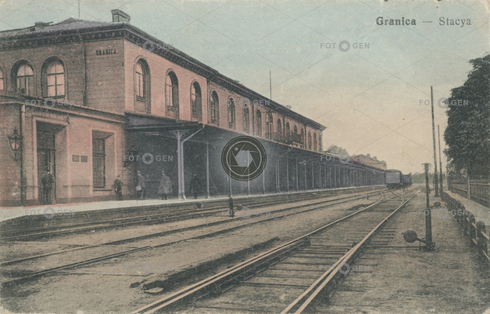 barevná budova colored doprava dráha Granica koleje kolorovaná místopis nádraží nádražní points Polish Polska Polsko railway station stanice switch topography train transport trať vlaková výhybka zastávka železniční