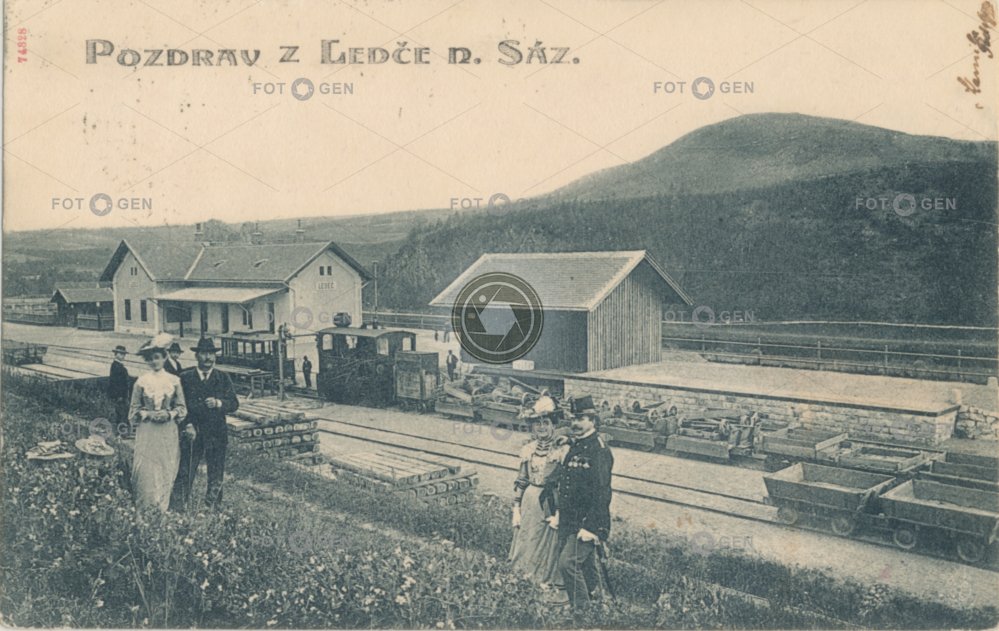 1903 alive an der Sasau budova dámy doprava dráha klobouky Ledeč Ledetsch lokomotiva místopis nad Sázavou nádraží nádražní narrow gauge Narrow-gauge railway special wagon speciální vagon stavba topography Train Station transport trať úzkokolejka úzkokolejná úzkorozchodná vagon vagony vlak vlakové nádraží výstavba známka železniční živá