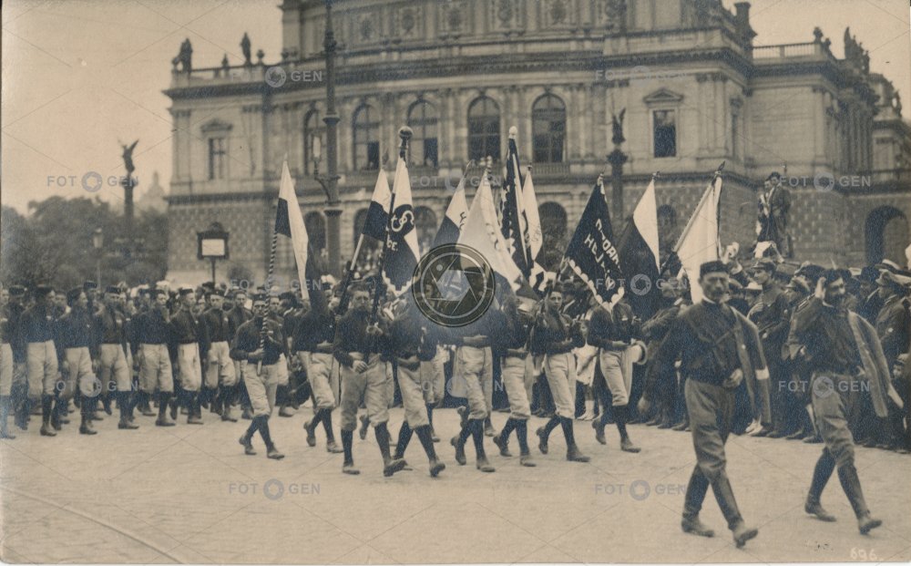 1920 Dům umělců event J. Palacha místopis Old Town Palachovo Parlament Prague Praha průvod Rudolfinum Smetanovo sokol square Staré Město topography událost uniform uniforma vlajka