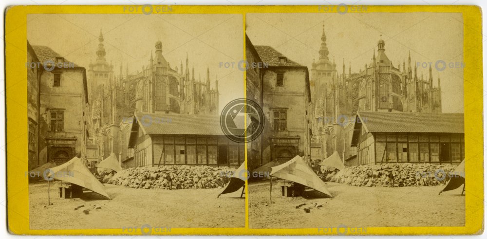 Východní strana chrámu sv. Víta se stavební hutí , stereofoto