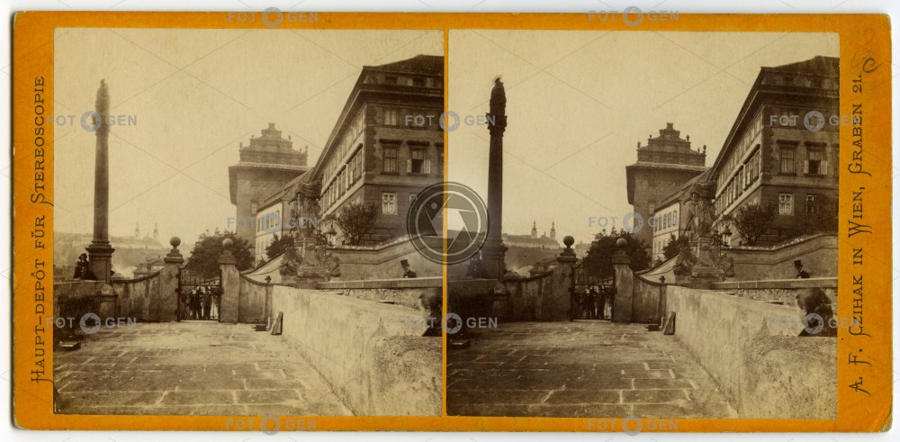 Hradčany Kajetánka lattice místopis mříž Pieta Prague Prague Castle Prague Castle Ramp Praha Pražský hrad Rampa Pražského hradu Schwarzenberg Palace Schwarzenberský palác socha statue topography