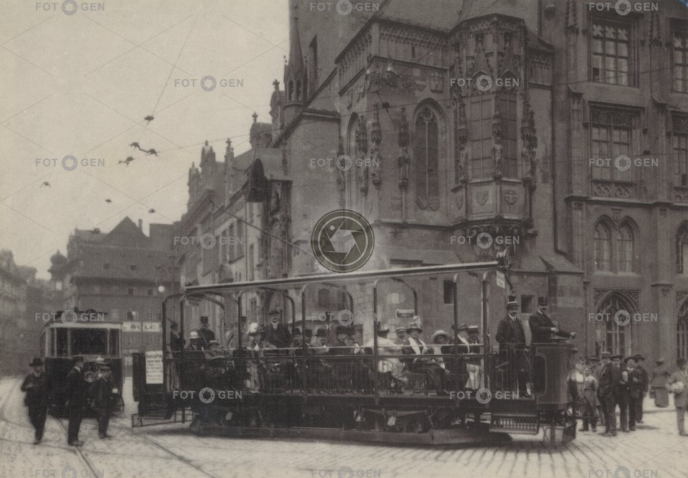 1913 Astronomical Clock doprava event lidé Menschen místopis Old Town Old Town Square orloj people Prague Praha radnice Staré Město Staroměstké náměstí topography town hall tram tramvaj transport událost výhlídková