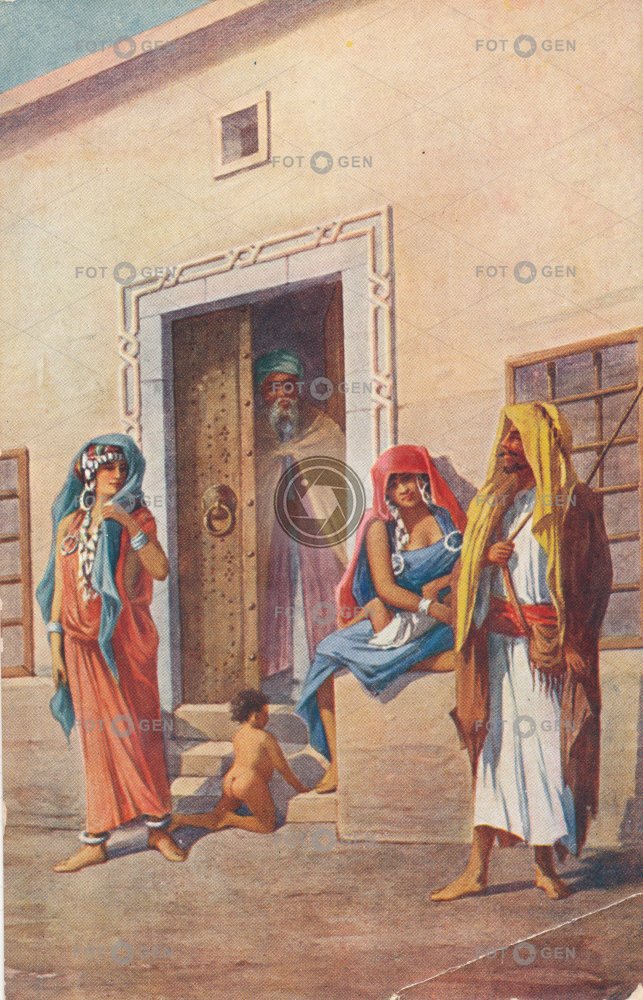 Arab Republic of Egypt barevná color costume dámské děti dítě dress Egypt ethnology etnologie Family Frau frock children Kinder Kostüm kresba kroj malba místopis orient orientální rodina šaty topography tradiční šaty traditional dress woman žena ženy