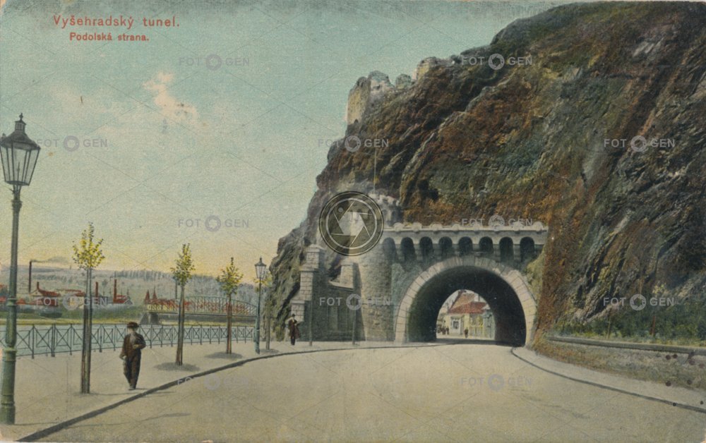 barevná colored embankment místopis nábřeží Podolí Podolské Podskalí pouliční osvětlení Prague Praha rock skála street lamp topography tunel tunnel Vyšehrad Vyšehradské