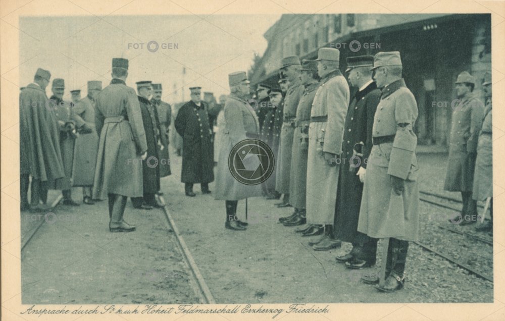 alive arcivévoda archduke army Bedřich celebrity doprava event field Marshal Fridrich Friedrich maršál maršálek místopis osobnosti polní polní maršál projev speech Těšínský topography transport událost unifom uniforma vojáci voják vojsko železniční živá