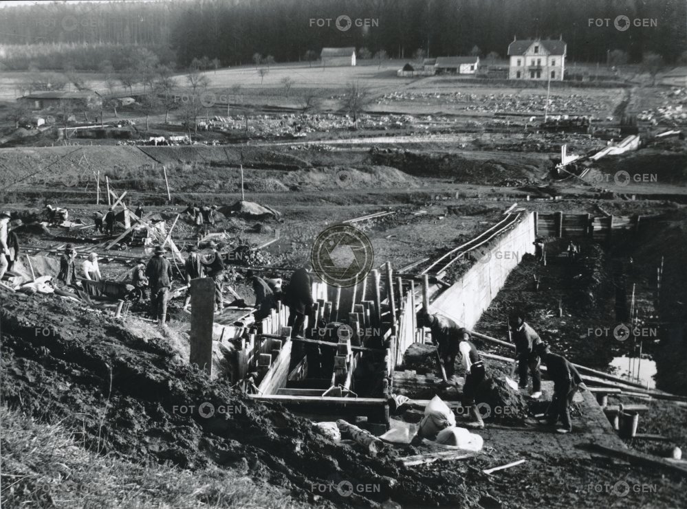 Výstavba Luhačovické přehrady mezi lety 1912 - 1930 Autor: neznámý