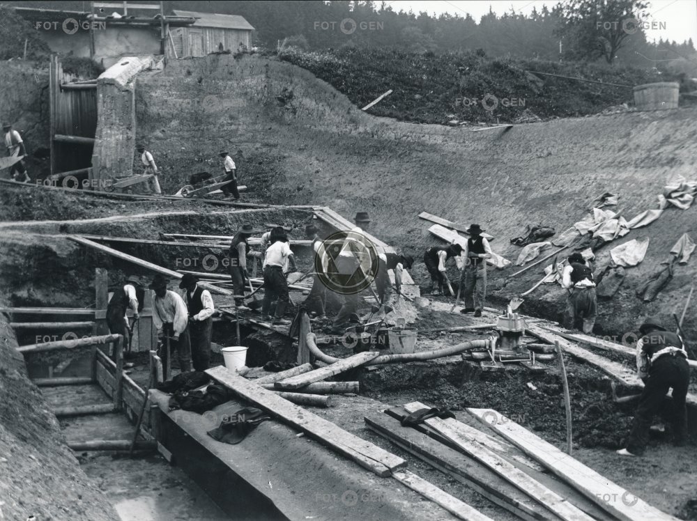 Výstavba Luhačovické přehrady mezi lety 1912 - 1930 Autor: neznámý